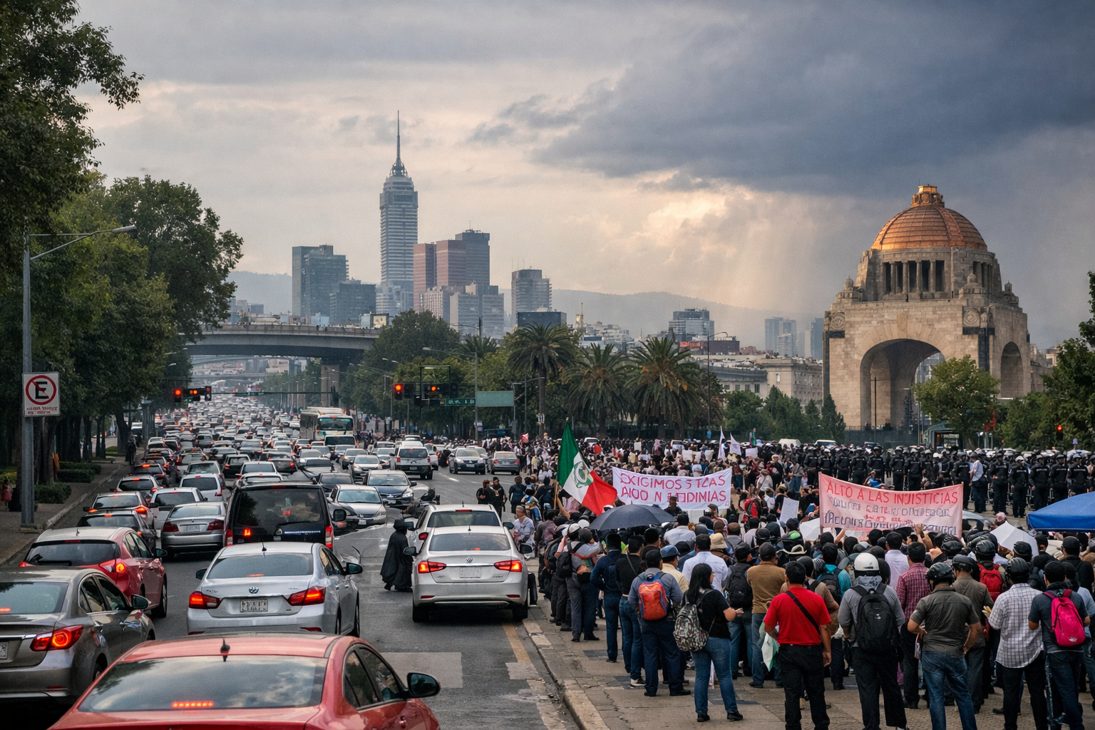 En cuanto a marchas y bloqueos, hay movilizaciones programadas en distintos puntos de la capital, lo que genera cierres parciales y afectaciones temporales. Como suele ocurrir, las protestas se concentran en el primer cuadro de la ciudad y en inmediaciones de dependencias federales y locales. La recomendación es anticipar rutas alternas y prever más tiempo de traslado.